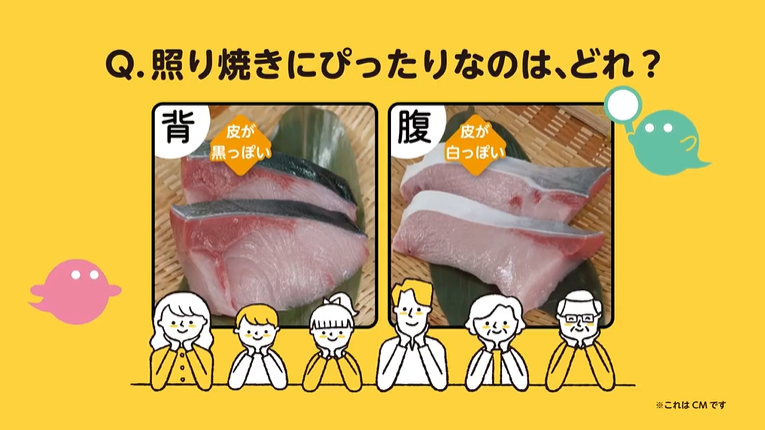 このCMではブリの特徴を生かした買い分け方をご紹介! ブリは部位によって硬さや味の特徴が異なるので、賢く買い分けをすることでよりおいしく食べることができるんです!